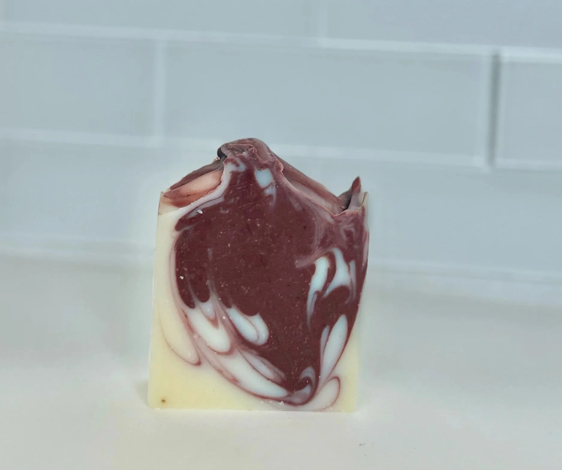 “My Favorite” Beautiful handcrafted organic bar soap made with shea butter, herb infused olive oil, coconut oil, pink clay, and peppermint essential oil. This bar is creamy and so refreshing. I designed this bar specially for women battling breast cancer. This bar represents strength!